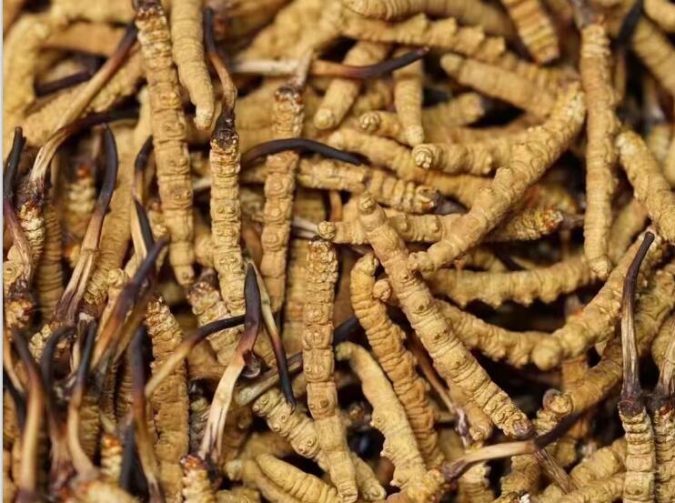 涼山蟲草:蟲體較長。有3-6厘米,表面棕褐色,蟲足不明顯。草部細(xì)長,有10-30厘米,直徑較細(xì),呈黃棕色至黃褐色。少數(shù)草部頂端有分支。