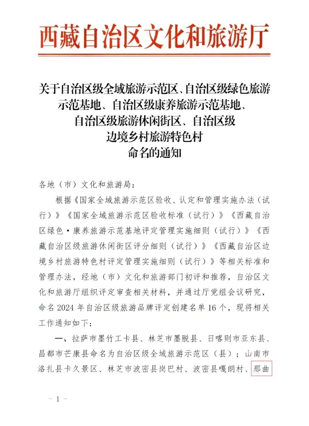 關(guān)于自治區(qū)級全域旅游示范區(qū)、自治區(qū)級邊境鄉(xiāng)村旅游特色村等命名的通知